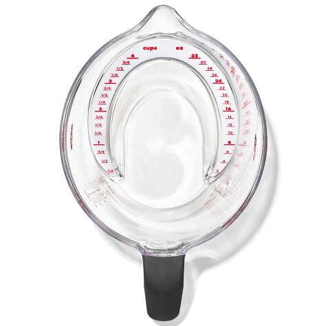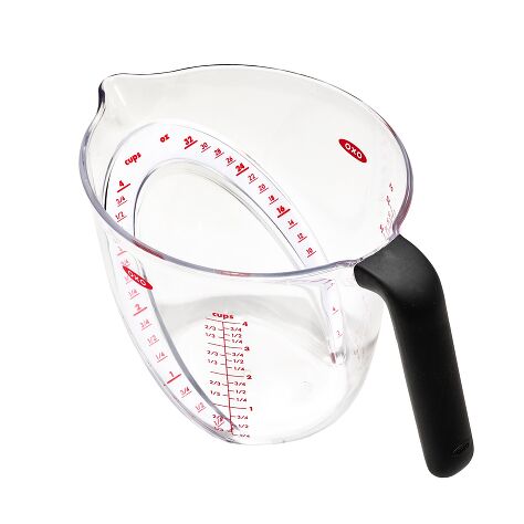 Olvídate de agacharte para comprobar la medida de tus líquidos. El vaso medidor angular OXO Good Grips de 4 tazas facilita todo, desde preparar cócteles hasta vinagretas, gracias a su revolucionario diseño que te permite leer la medida con solo mirar hacia abajo. Nuestro vaso es uno de los favoritos de los editores de la revista Good Housekeeping porque su superficie angular patentada en el interior te permite leer fácilmente las marcas de tazas, onzas y mililitros desde arriba. Nuestro vaso ligero y sin BPA está hecho de plástico Tritan™ Renew. Tiene un asa antideslizante y una boquilla amplia que te permite verter con comodidad y control. También disponible en versiones mini, de 1 taza y de 2 tazas. Apto para lavavajillas en la rejilla superior.